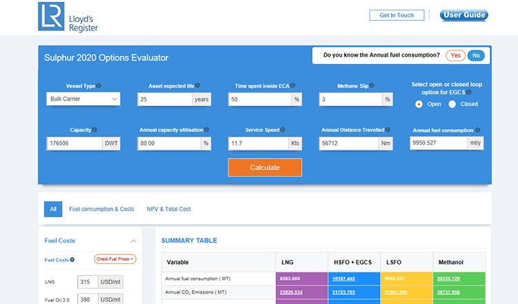 這款評估工具能夠計算各種規(guī)定對潛在成本與投資的影響,以便船東在采用包括船用柴油、重油洗滌器和其他合規(guī)燃料以及液化天然氣(LNG)和甲醇的運營策略上進行預(yù)算和決策。