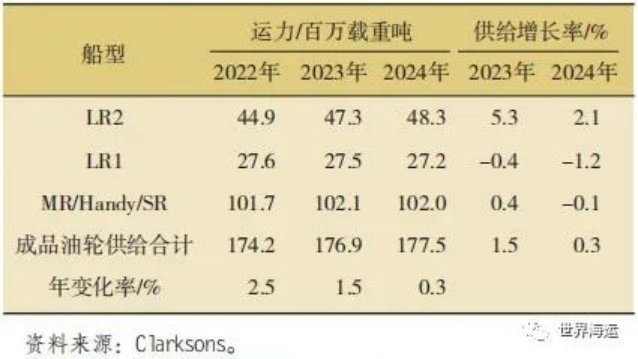原油輪運力:Clarksons最新數(shù)據(jù)顯示,預(yù)計2023年原油輪運力總需求3.33億載重噸,同比增長6.7%;而運力總供給為4.27億載重噸,同比增長僅為1.9%。由于全球石油貿(mào)易流向的重構(gòu),原油運輸航距已明顯拉長,預(yù)計原油噸海里貿(mào)易將增長6.6%。其中VLCC、Suezmax、Aframax船型需求增速都大于供給增速,差值分別為4%、8%和5%。