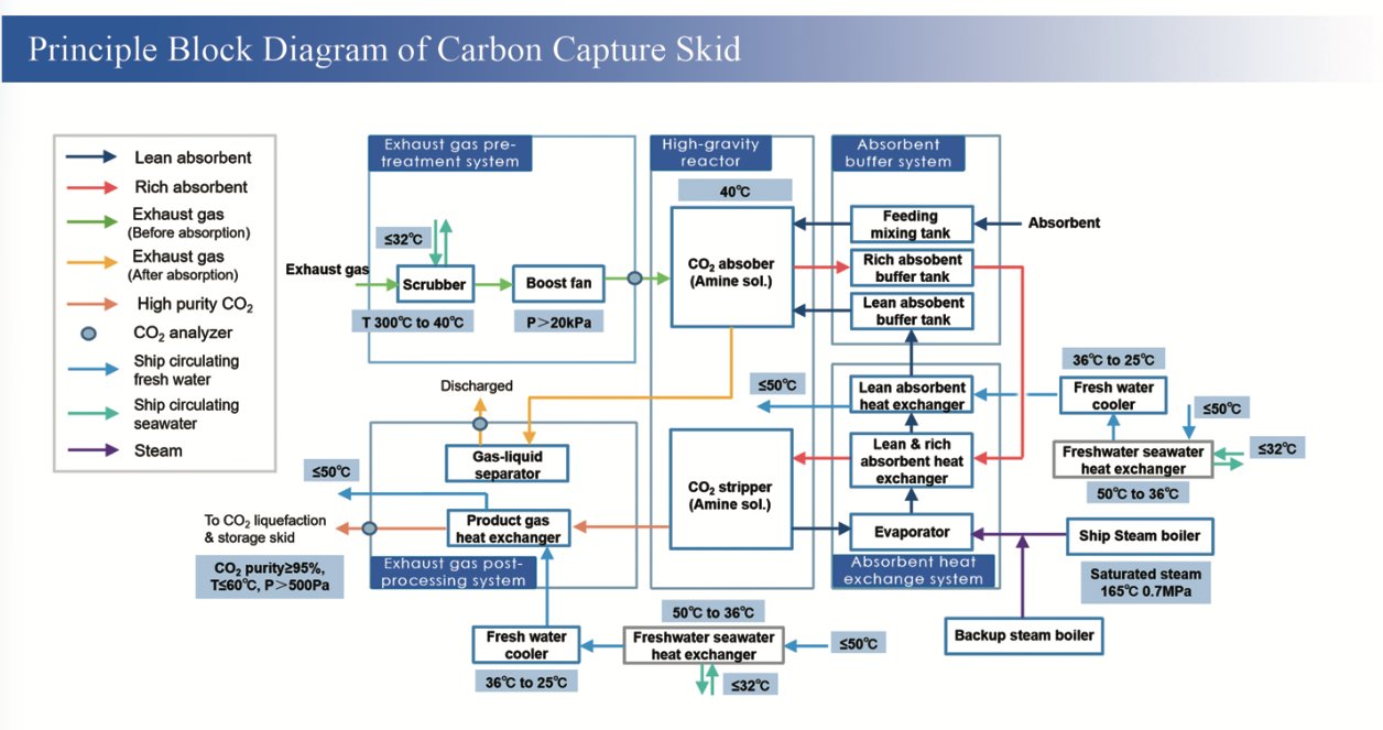 碳捕集系統(tǒng)是一項(xiàng)前沿的尾端處理技術(shù),在不改動(dòng)主機(jī)的前提下,通過化學(xué)吸收方式高效捕集發(fā)動(dòng)機(jī)尾氣中的二氧化碳。二氧化碳捕集率最高可達(dá)90%,捕集純度不低于99.9%。