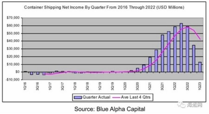 在整個疫情期間獲得創(chuàng)紀(jì)錄的利潤之后,過去11個月班輪公司的運(yùn)氣一直在下滑。以色列的ZIM和臺灣的萬海航運(yùn)本月成為自2020年以來首批出現(xiàn)季度虧損的大型班輪公司。然而,總體而言,慢速航行使得大多數(shù)航運(yùn)公司成功地避免了虧損,Blue Alpha Capital主管John McCown上周五報(bào)告稱,集裝箱航運(yùn)業(yè)第一季度實(shí)現(xiàn)凈利潤130億美元。