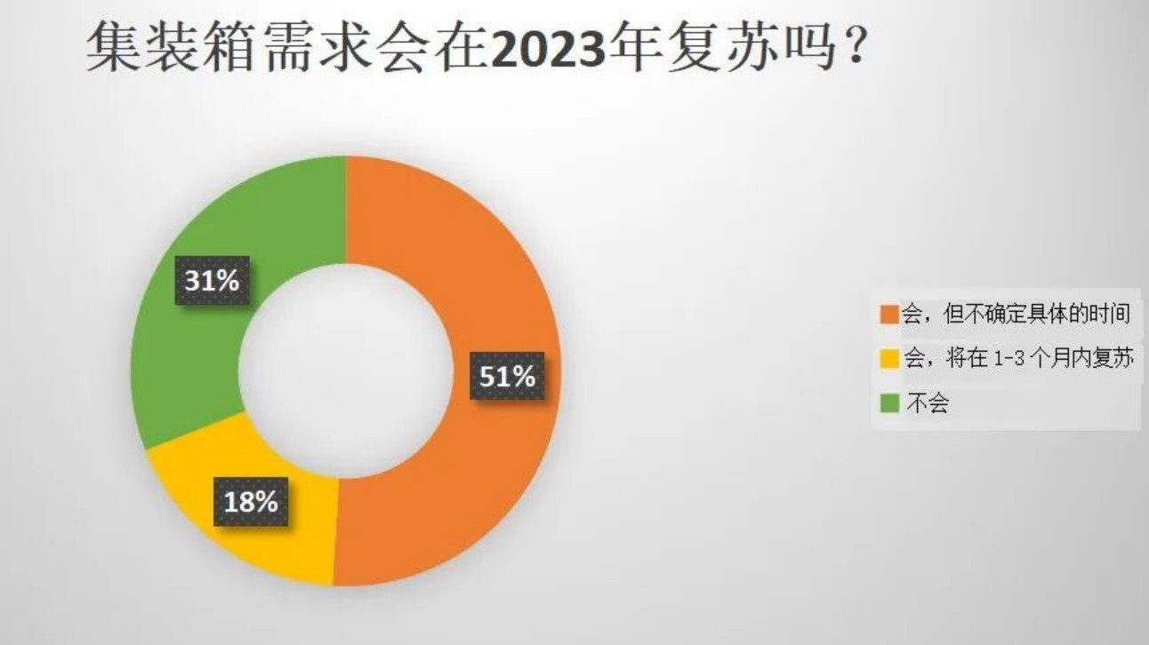 德國艾世捷公司最近(2023年5月)針對全球貨代行業(yè)的調(diào)查也反映了這種情緒。大約69%的受訪者(406個(gè)樣本量)希望集裝箱需求會(huì)在2023年反彈。僅有18%預(yù)計(jì)該需求復(fù)蘇會(huì)在短期(1-3個(gè)月)內(nèi)出現(xiàn)。大約51%的人只能靠“猜測”來預(yù)估未來情況,并不確定集裝箱需求會(huì)在何時(shí)反彈。