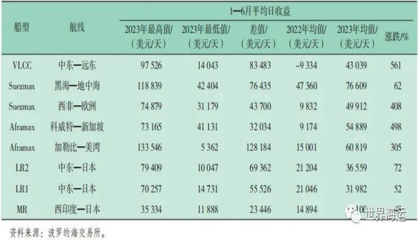 表1 2023年上半年油輪各航線日收益表現(xiàn)