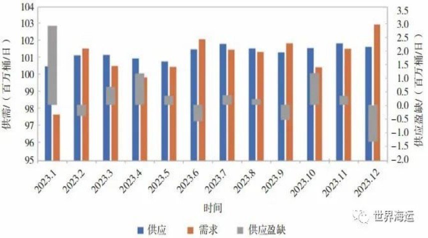 2023年4月2日,OPEC+宣布實施自愿減產(chǎn)石油計劃,合計自愿減產(chǎn)量接近165萬桶/日,持續(xù)時間從2023年5月至2023年底。4月3日布倫特原油期貨價格最高飆升至86.24美元/桶,漲幅達到7.94%。2023年6月4日,OPEC+決定延續(xù)目前的減產(chǎn)計劃到2024年12月31日,此外,OPEC的頭號產(chǎn)油國及世界上最大的原油出口國沙特阿拉伯表示,將在7月份實施額外100萬桶/日的減產(chǎn),并延續(xù)至8月,這將使其在此期間的石油產(chǎn)量控制在900萬桶/日,也將是自2021年6月以來的最低水平。OPEC+的減產(chǎn)政策將帶來國際油價波動,而國際油價波動與全球石油供需關(guān)系密切相關(guān),延續(xù)減產(chǎn)必定會帶來供需關(guān)系的變化。綜合來看,2023年下半年全球石油需求將保持增長態(tài)勢,OPEC+減產(chǎn)及美國補充戰(zhàn)略石油儲備將加劇全球供需緊張形勢,預(yù)計全球油市可能恢復(fù)供不應(yīng)求的局面,國際油價大概率將保持中高位震蕩。