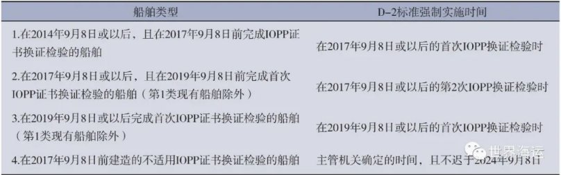 表1  現(xiàn)有船舶D-2標(biāo)準(zhǔn)強(qiáng)制實(shí)施時(shí)間