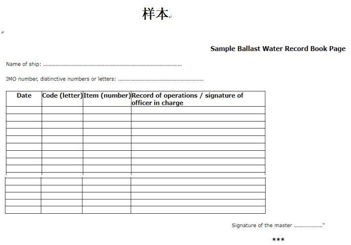 規(guī)范了壓載水置換、壓載水內(nèi)部循環(huán)和艙內(nèi)處理的記錄格式。